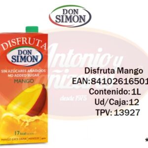 DISFRUTA MANGO 1LITRO DON SIMON (Sin azucares añadidos) – Caja de 12 Ud.