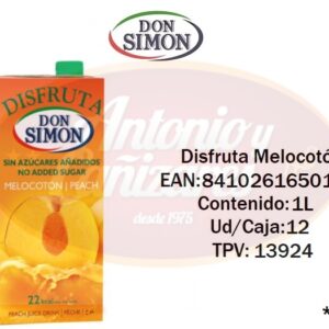 DISFRUTA MELOCOTON 1LITRO DON SIMON (Sin azucares añadidos) – Caja de 12 Ud.