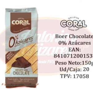 Boer choco 0% azucar 150g Coral – Caja de 20 Unidades