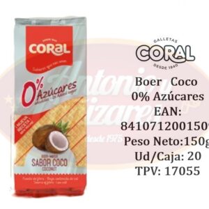Boer coco 0% azucar 150g Coral – Caja de 20 Unidades