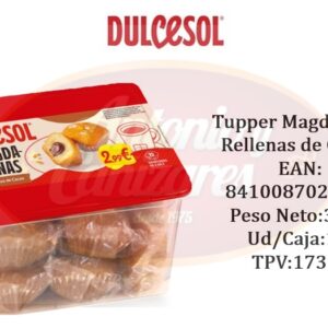 Tupper Magdalenas rellenas cacao Dulcesol – Peso Neto 300 Gr. – Caja de 12 Unidades