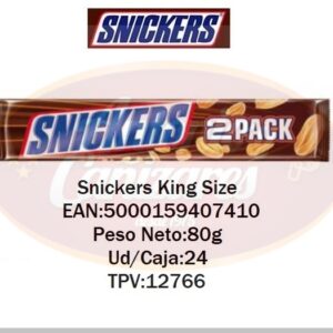 Snickers King Size Pack 2 – Peso Neto 80g – Caja de 24 Unidades