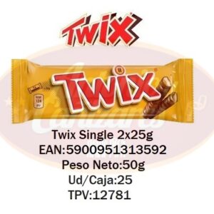 Twix single 2 x 25g – Peso Neto 50 Gr. – Caja de 25 Unidades