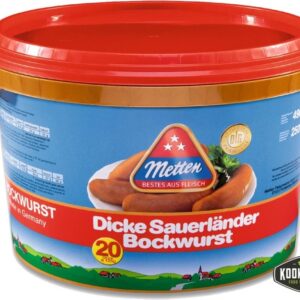 SALCHICHA BOCKWURST ROJA «XL» CAL 30/32 – 125gr LATA de 12 Und. – Caja de 12 latas