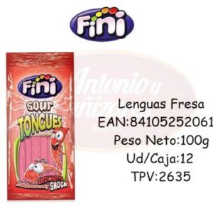 Lenguas Fresa – Bolsas de 100g – Marca Fini – 12 Unidades