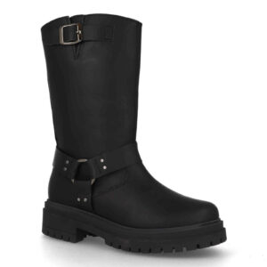 Botas Mujer Piel Negro Hebillas Tacón Alto