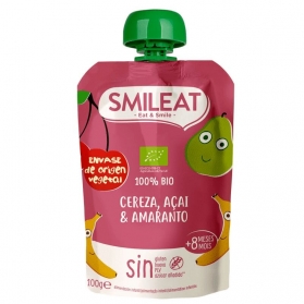 POUCH DE CEREZA AÇAI Y AMARANTO BIO +8 MESES 100G SMILEAT – Caja de 10 Unidades