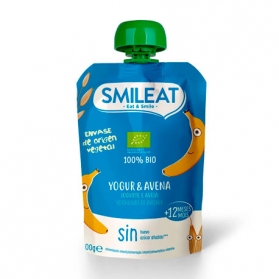 POUCH YOGUR Y AVENA ECO SIN AZUCARES AÑADIDOS +12 MESES 100G SMILEAT – Caja de 10 Unidades