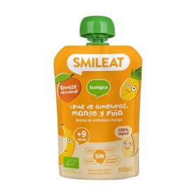 POUCH DE LECHE DE ALMENDRAS, MANGO Y PIÑA ECO 100GR +9 MESES SMILEAT – Caja de 10 Unidades