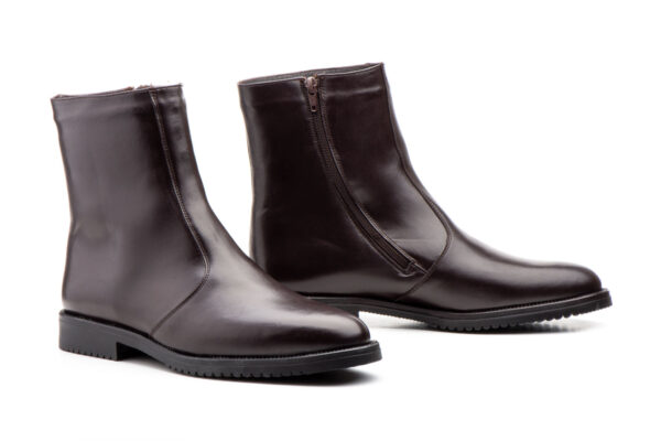 Botines Hombre Piel Marrón y Negro Cremallera Boreguillo Pelo