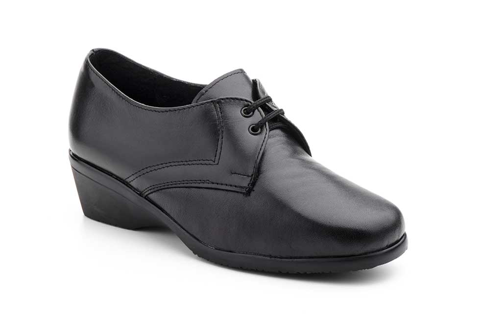 Zapatos Mujer Cuña Piel Negro Cordones Ancho Especial