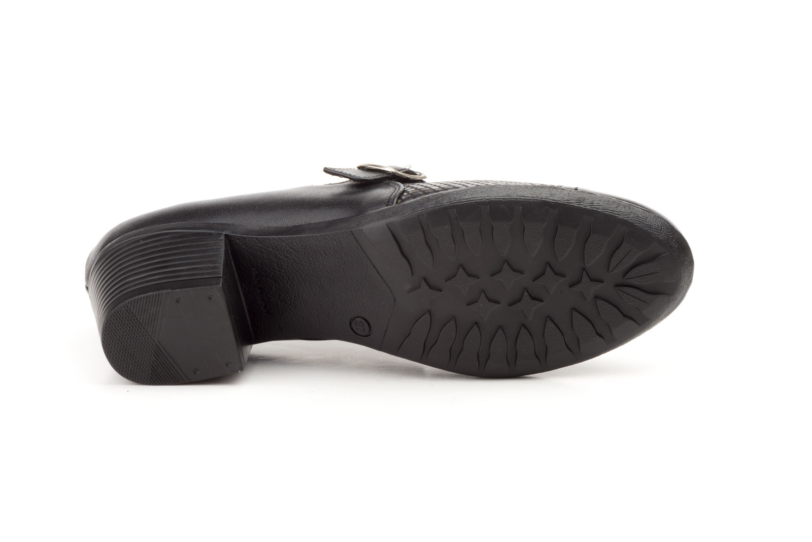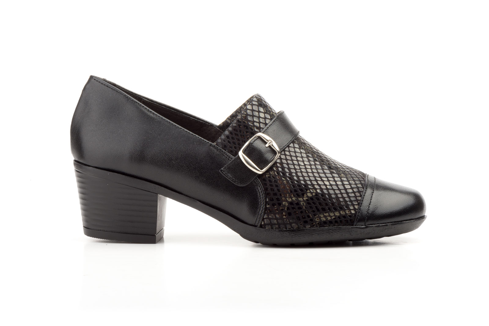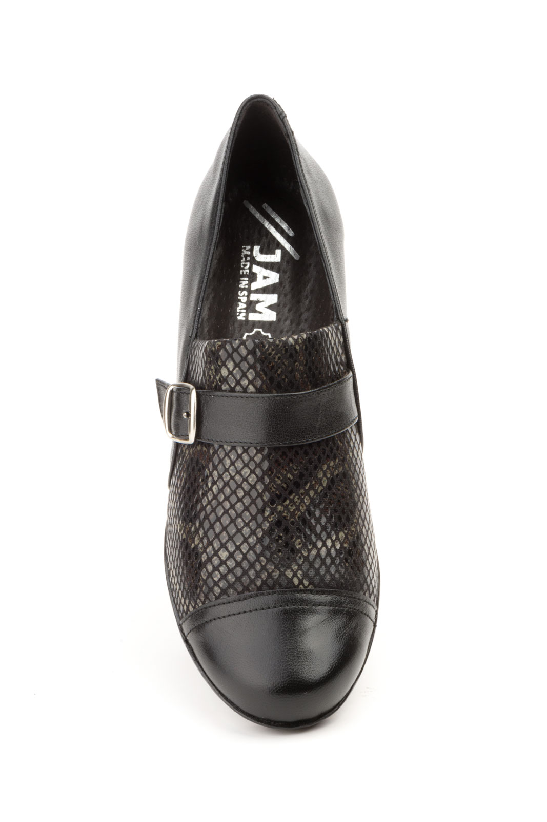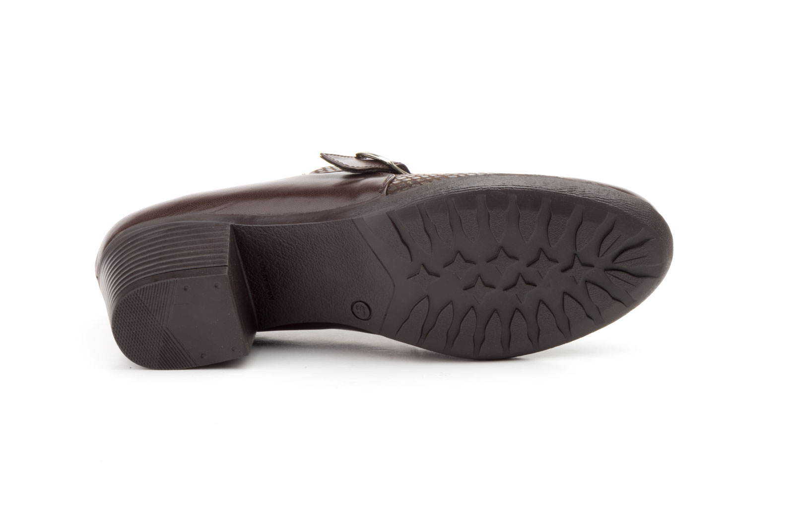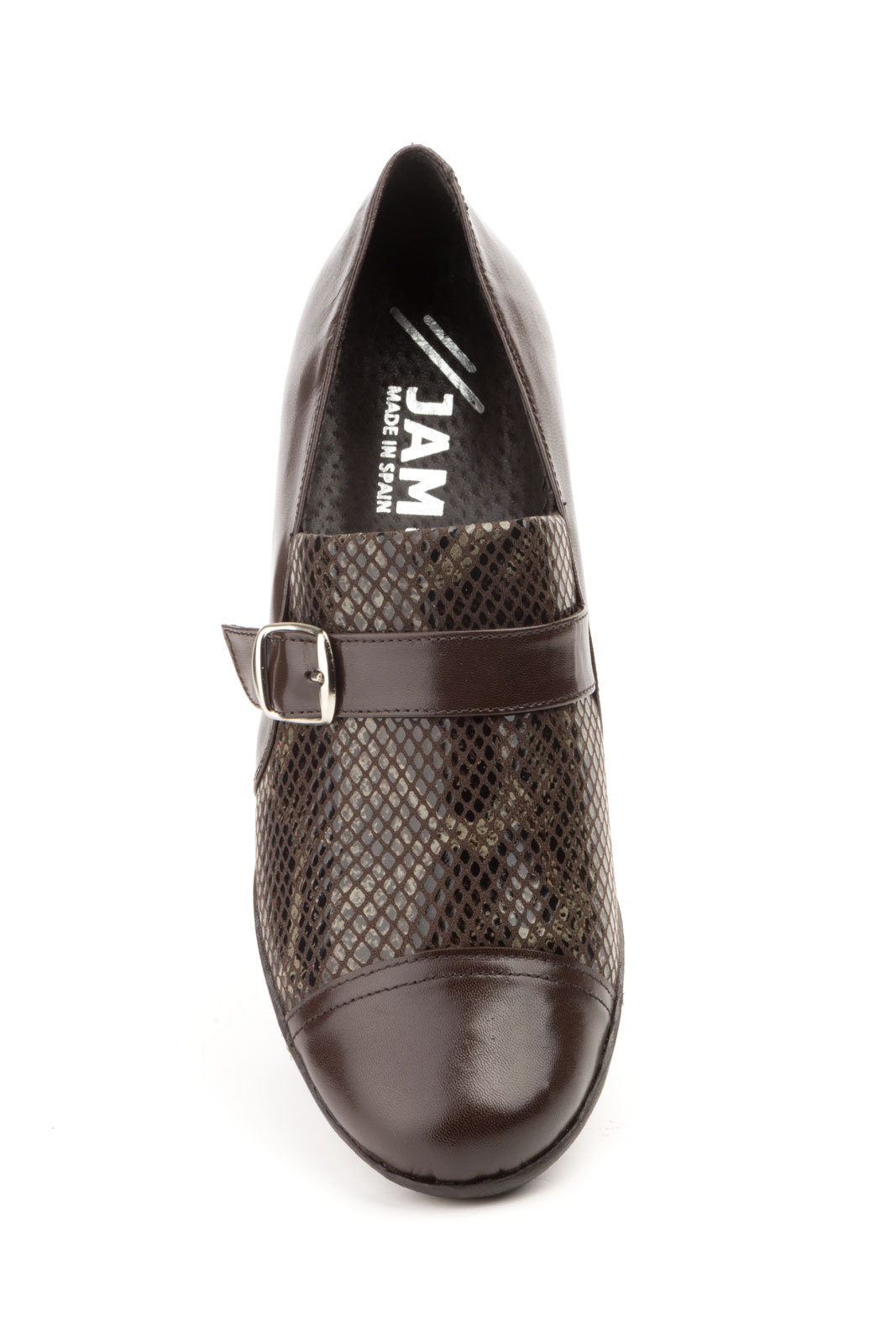 Zapatos Mujer Piel Marrón y Negro Lycra Hebilla