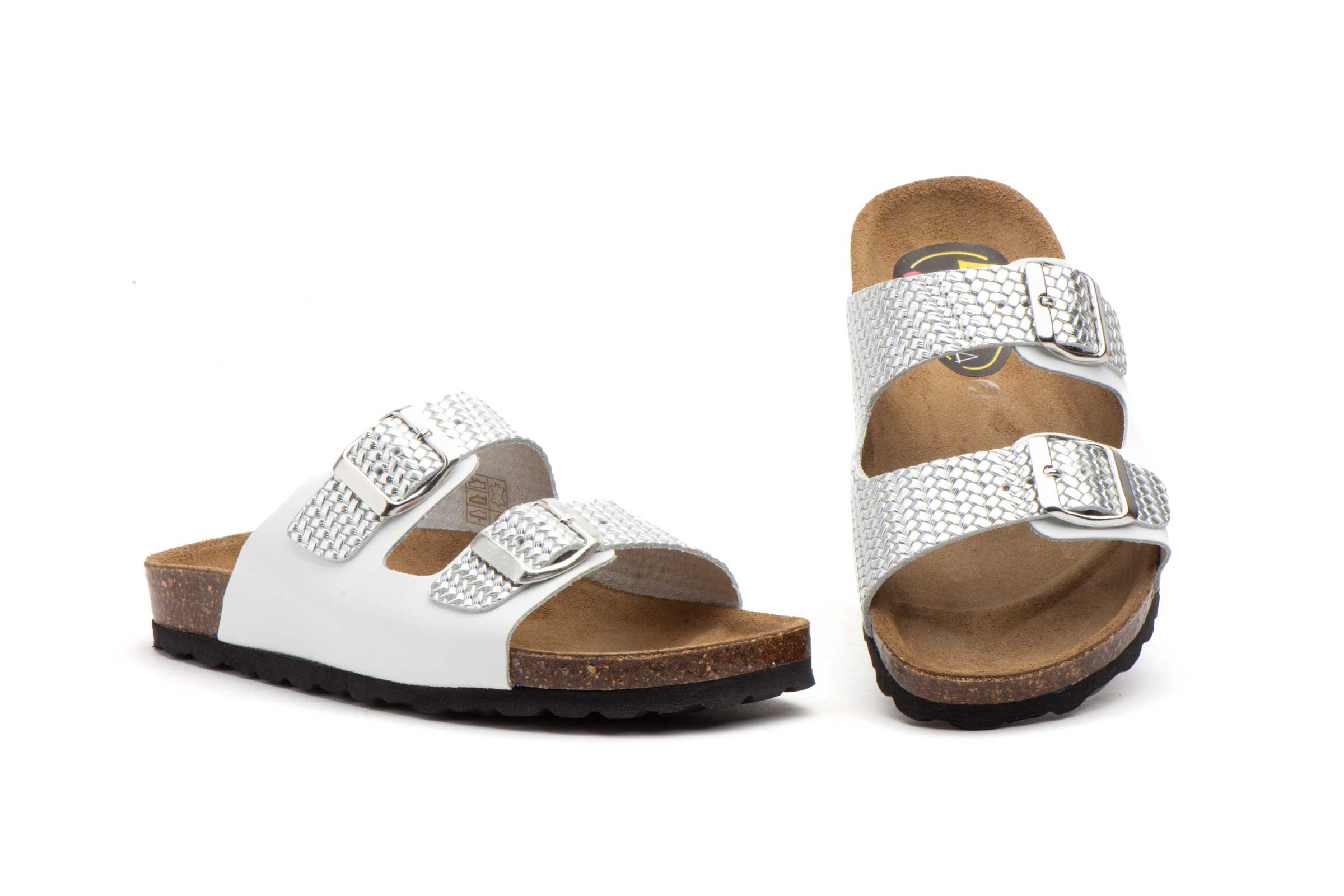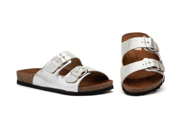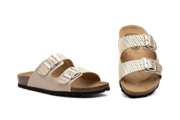 Sandalias Bio Mujer Piel Marrón Oro Hebillas