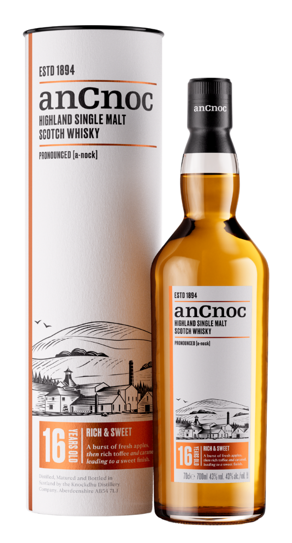 AnCnoc 16 Años es una elegante muestra del carácter de barrica ex bourbon tan bien madurado por parte de la destilería Knockdhu: cítrico, dulce y limpio, con un fondo de vainilla, toffee y especias. Ideal para quienes buscan un whisky ligero, fresco y equilibrado, con suficiente complejidad y sin exceso de turba o madera.
