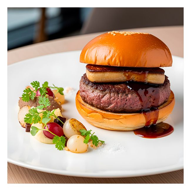 Carne jugosa y sabrosa, de textura delicada y marmoleo perfecto, ofreciendo un sabor intenso y memorable en cada bocado.