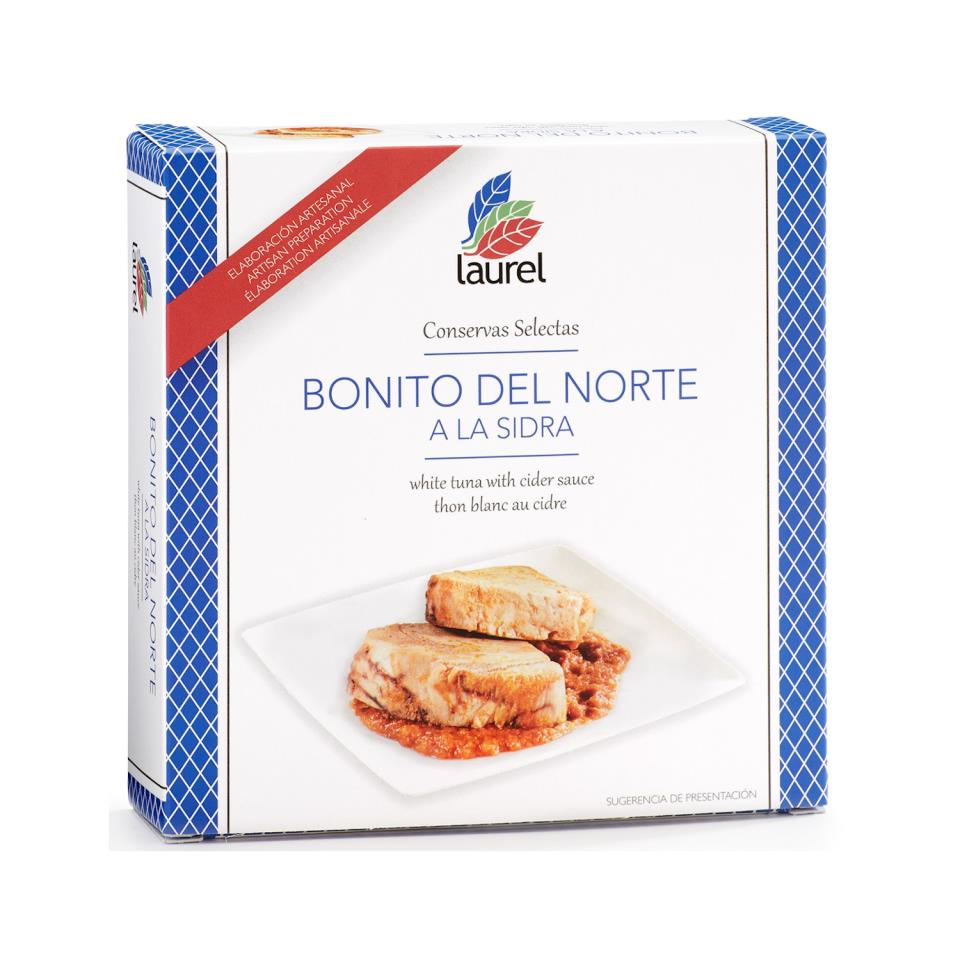 Lomo de bonito del norte de costera, limpiado y desespinado a mano en crudo, guisado con nuestra receta tradicional de sidra y elaborado de forma artesanal.