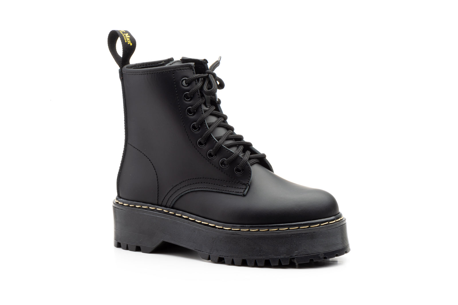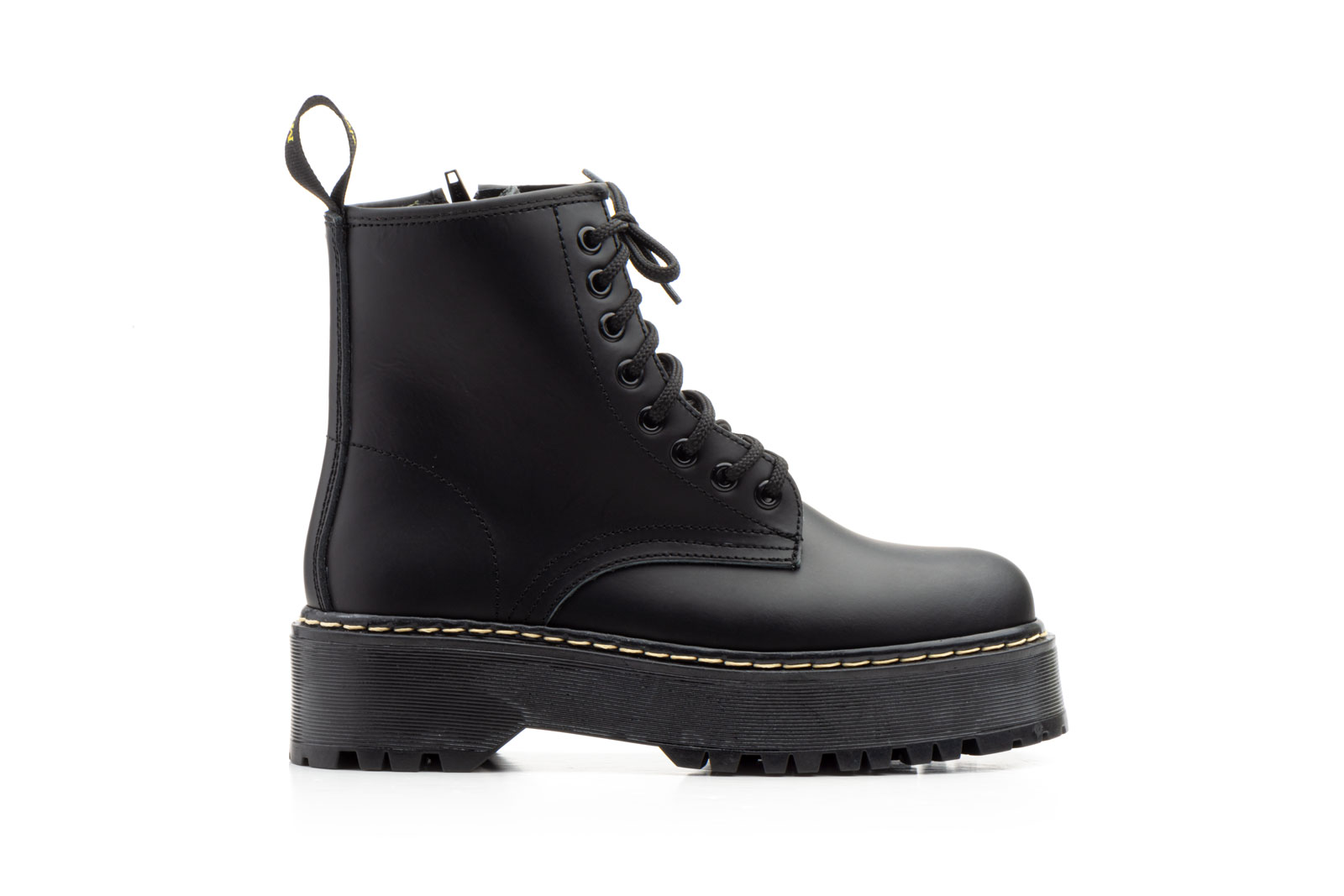 Hecho en España Bota Mujer Piel Negro Cordones Plataforma