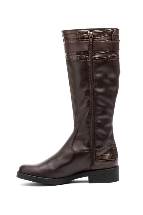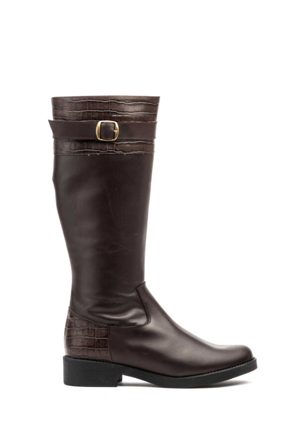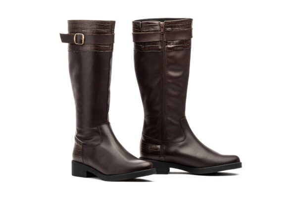 Impresiona a tus clientes con la sofisticación del calzado español con estas botas negras de alta calidad, diseñadas exclusivamente para el mercado mayorista de zapatos. Elaboradas en España, estas botas están fabricadas con la más fina piel natural, asegurando una apariencia lujosa y un ajuste cómodo. El diseño presenta una textura de cocodrilo en la parte superior, complementada con una elegante correa y hebilla dorada, que añade un toque distintivo y contemporáneo. La cremallera lateral permite un fácil acceso, mientras que la suela robusta y el tacón bajo proporcionan estabilidad y resistencia para el uso diario. El acabado brillante del cuero refleja la artesanía y la atención al detalle que caracteriza al calzado español. Estas botas son la elección perfecta para mayoristas que buscan ofrecer a sus clientes un calzado premium y atemporal. Palabras clave: Botas negras piel natural, calzado mayorista, diseño español, textura cocodrilo, hebilla dorada.