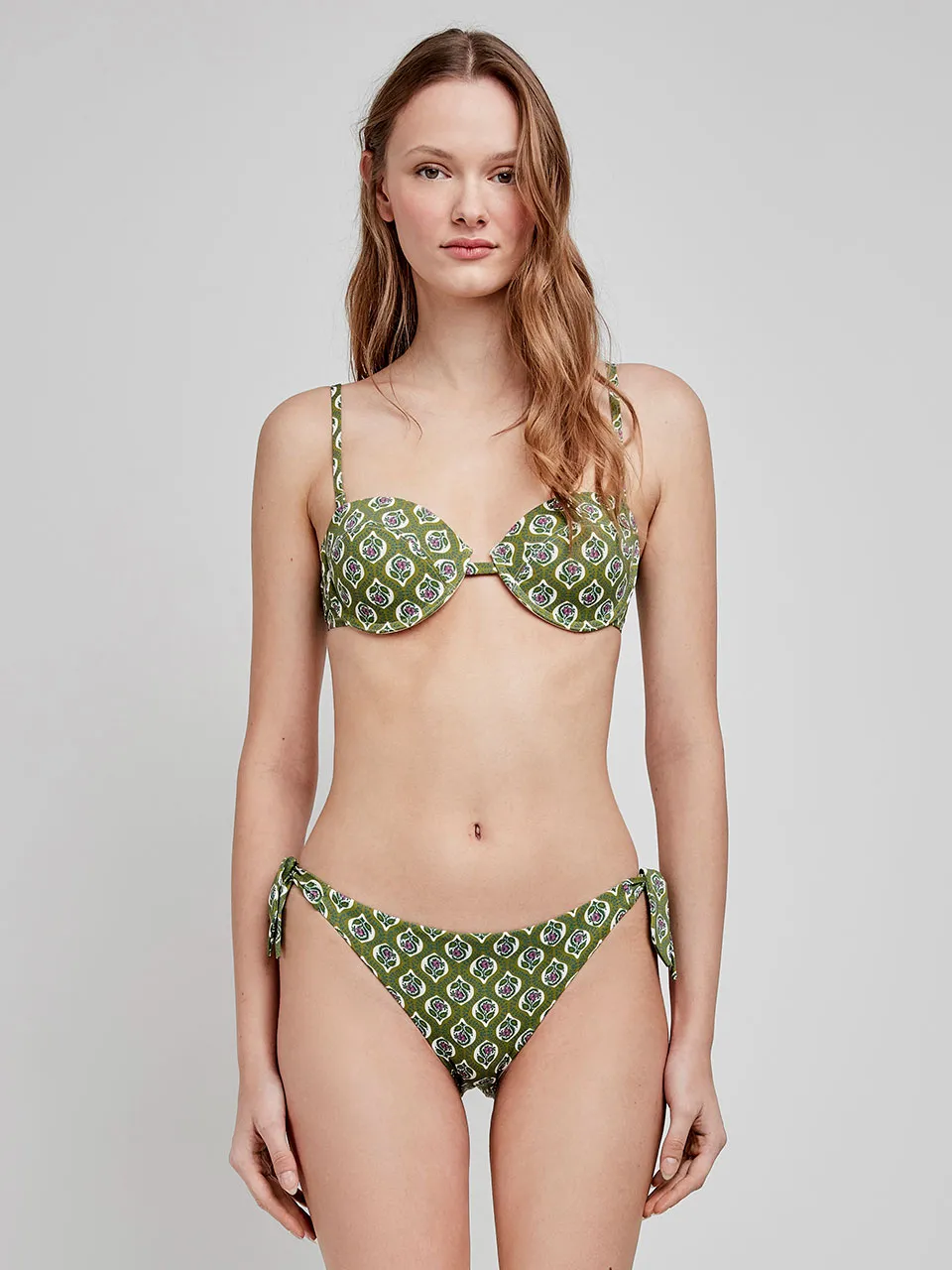 Braguita bikini en tejido estampado y ajustable en laterales con lazo. Combínala con su top bikini a juego.