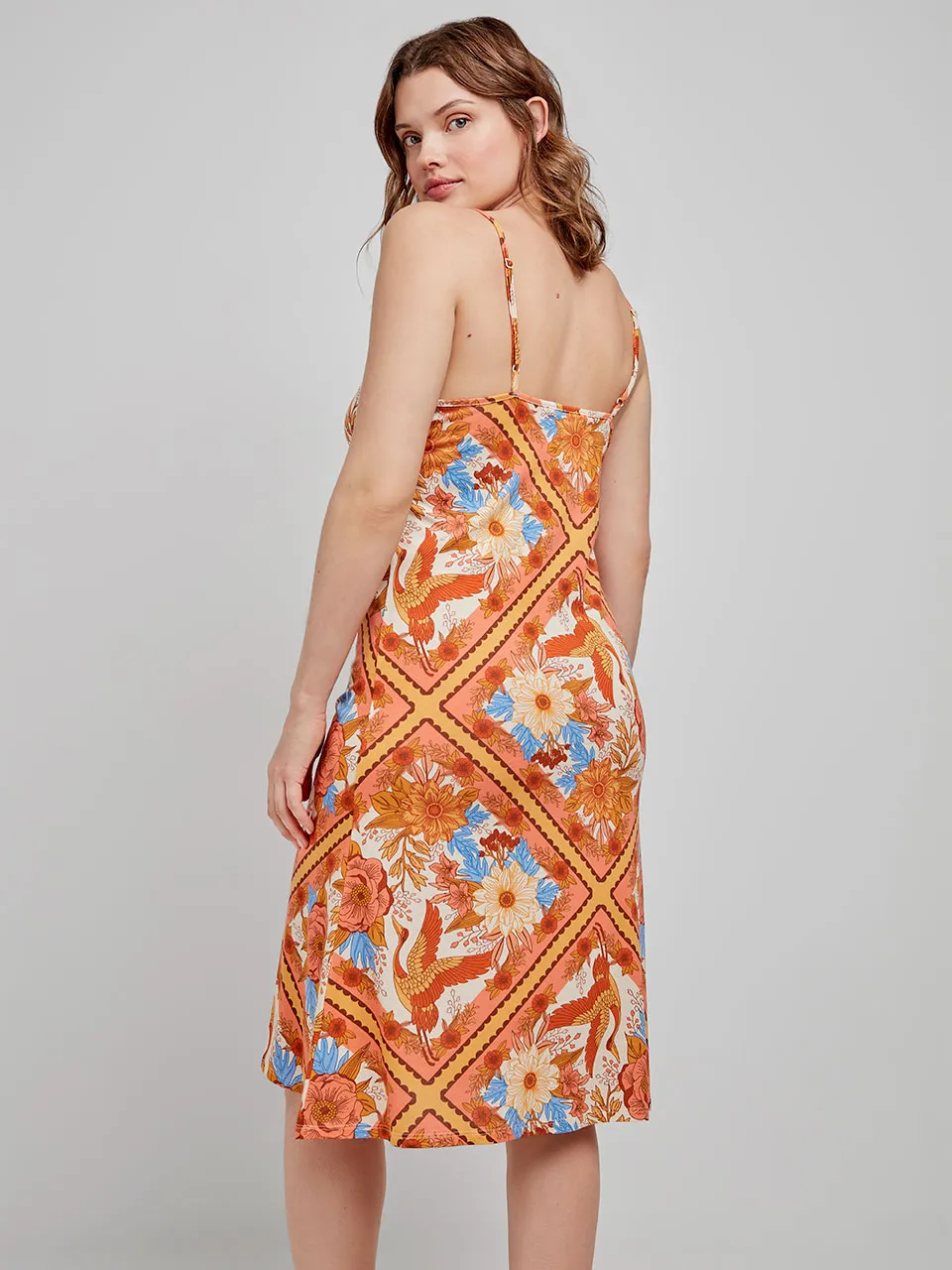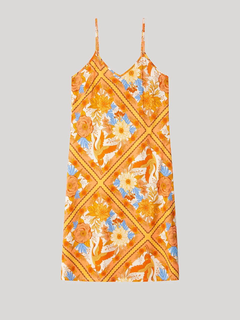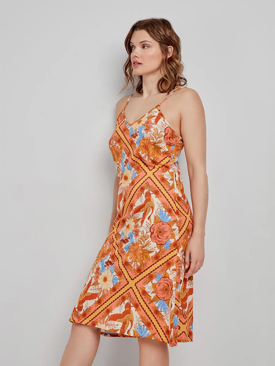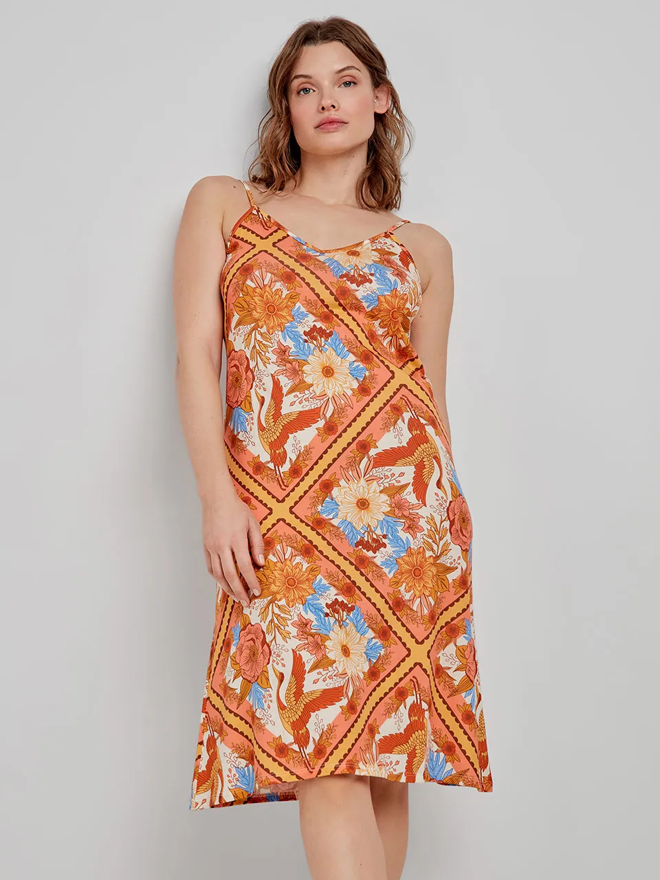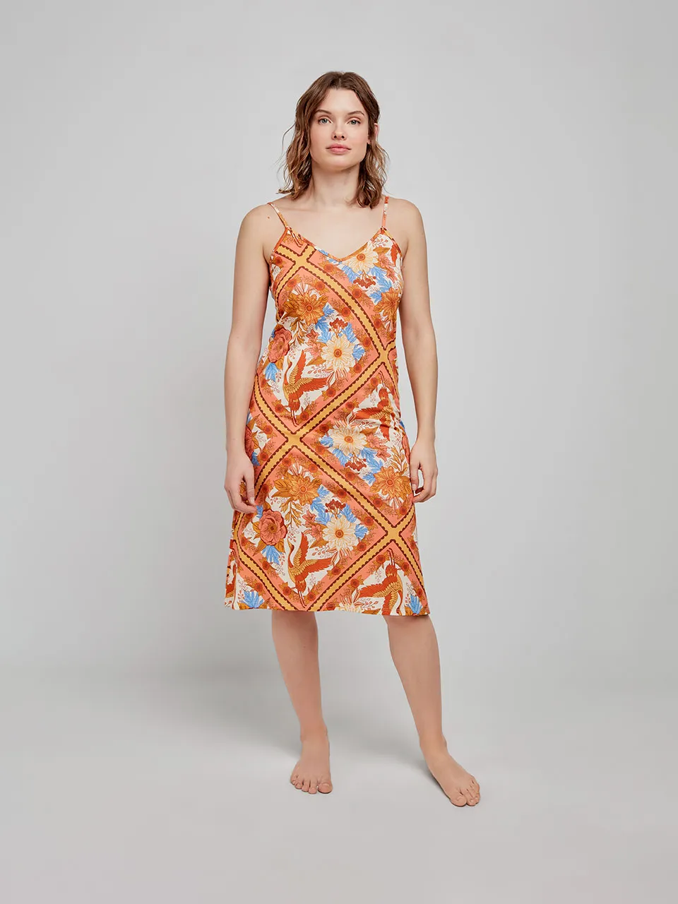 Camisón de tirantes en tejido algodón/modal con estampado oriental,cuello acabado en pico y tirantes regulables.