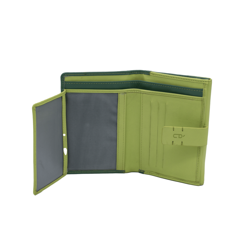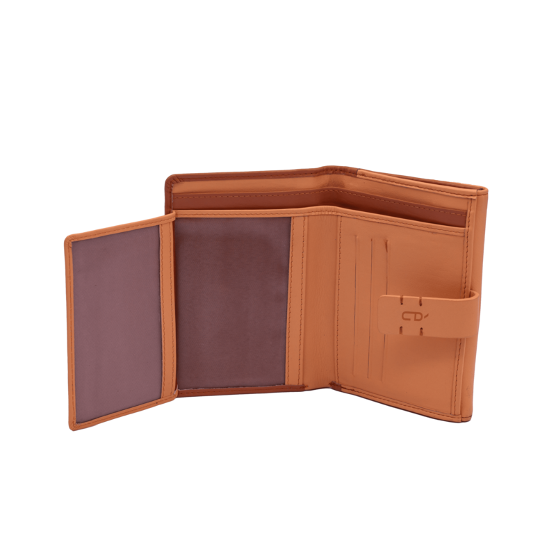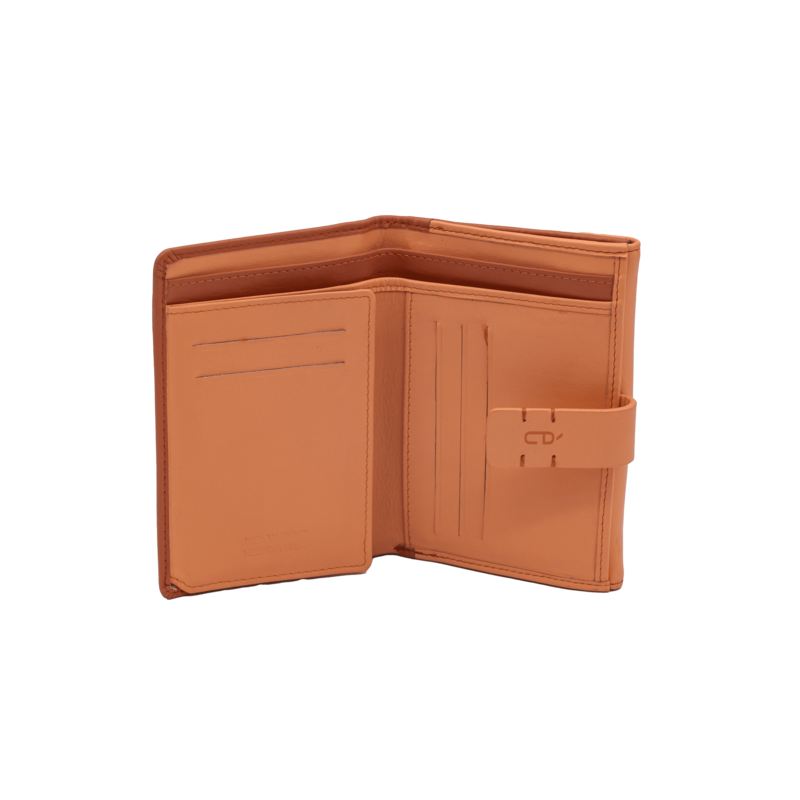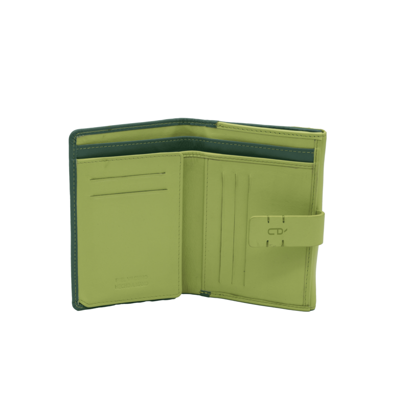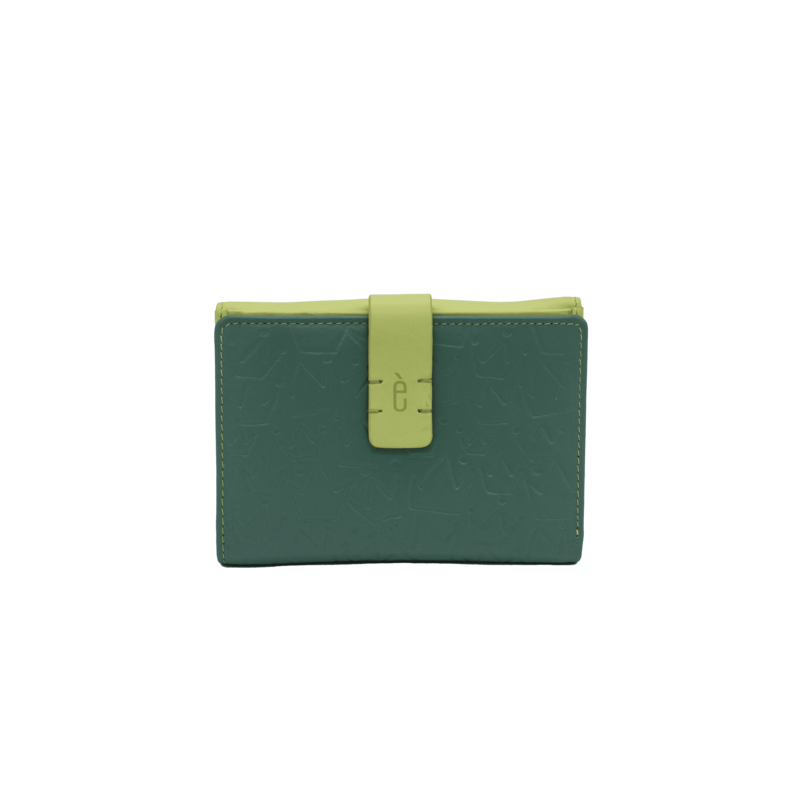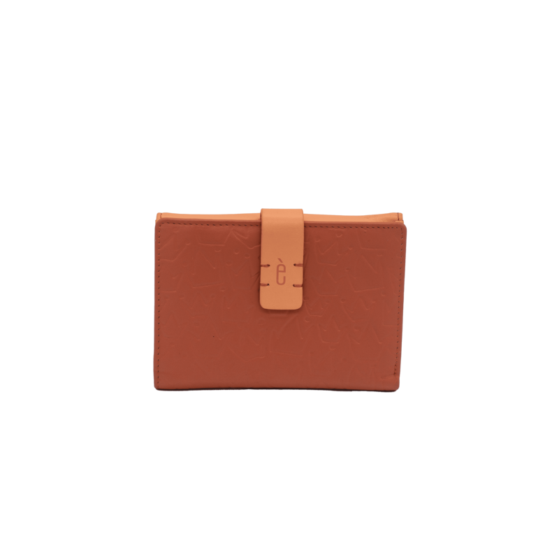 Cartera en piel de vacuno grabada. Tiene doble billetero, cinco compartimentos para tarjetas, un bolsillo extra y dos ventanas. Cuenta con un monedero de solapa de gran capacidad y un segundo monedero de cremallera en su interior para evitar la caída de las monedas.