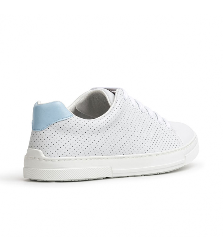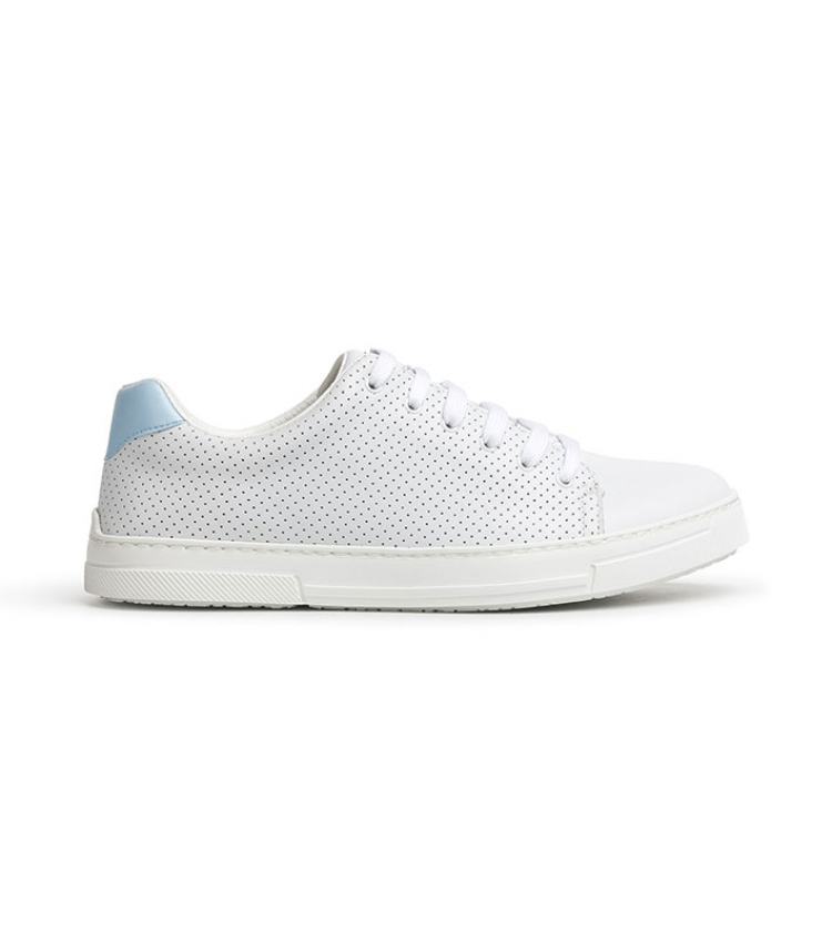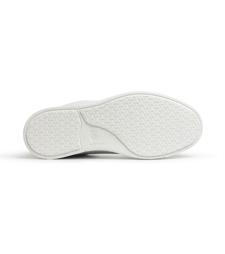 Zapato tipo bamba unisex y cierre de cordones. Corte de Microfibra forrado interiormente con microfibra técnica, acolchado en el tobillo para evitar rozaduras. Horma recta de puntera redondeada. Contrafuerte de dureza suficiente para sujetar el calcáneo. Plantilla acolchada de microfibra técnica sobre espuma de poliuretano termoconformado con tratamiento antibacterias y carbón activado. Suela de material compuesto EVA, ultraligera, confortable, flexible y antideslizante.
