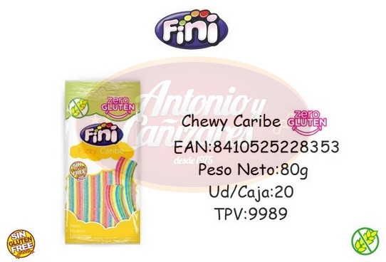 Chewy Caribe Zero – Bolsas de 80g – Marca Fini – 20 Unidades