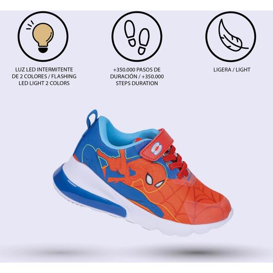 DEPORTIVA SUELA LIGERA EVA CON LUCES SPIDERMAN Composición PU+POLYESTER/POLYESTER/EVA. Personaje de SPIDERMAN.