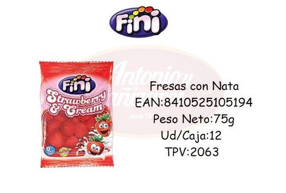 Fresas con Nata – Bolsas de 75g – Marca Fini – 12 Unidades