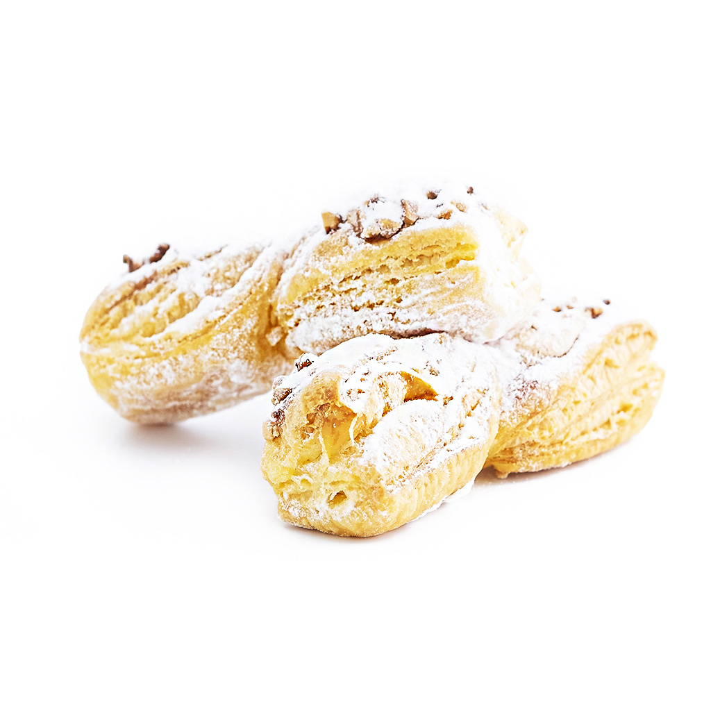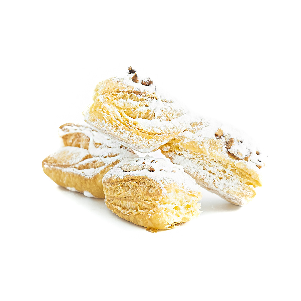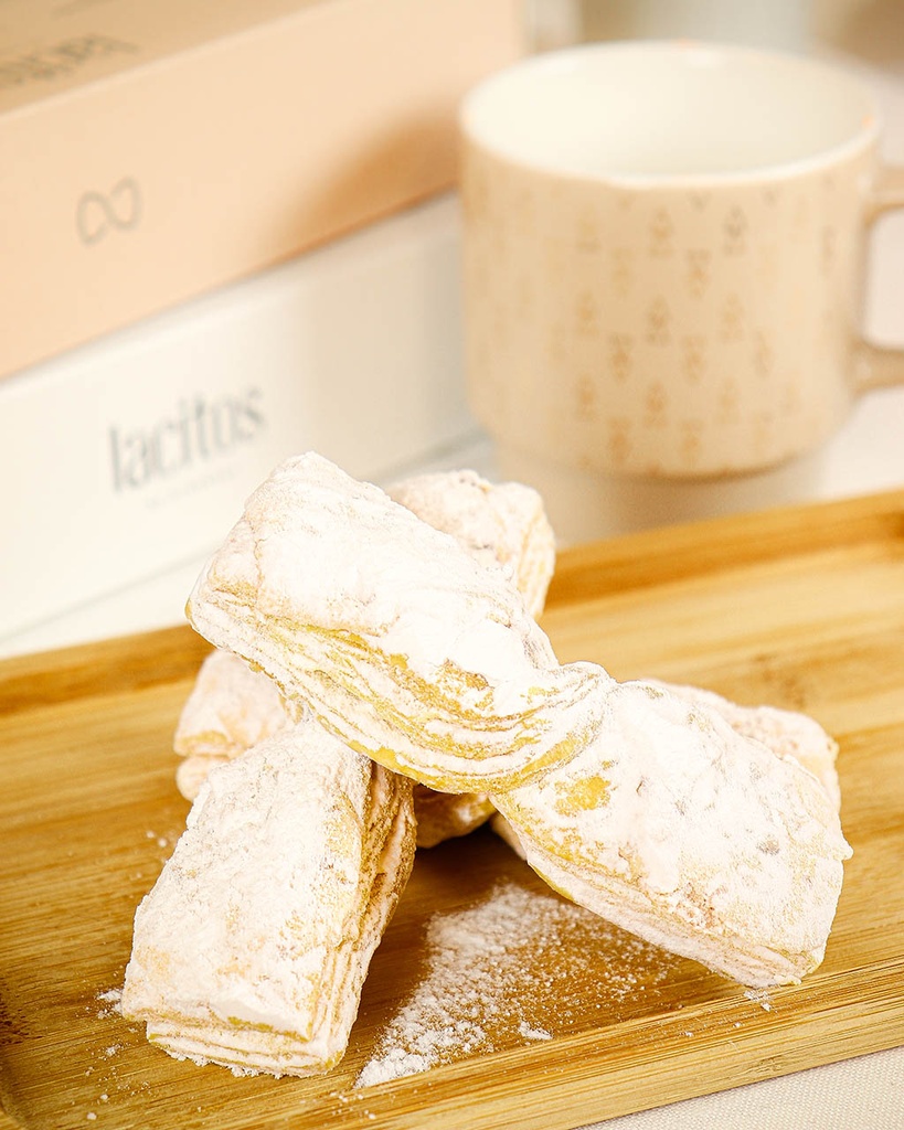 Especialidad de hojaldre de mantequilla típico de León, en forma de lazo con granillo de almendra tostado y cubierto con azúcar glass, deliciosos.