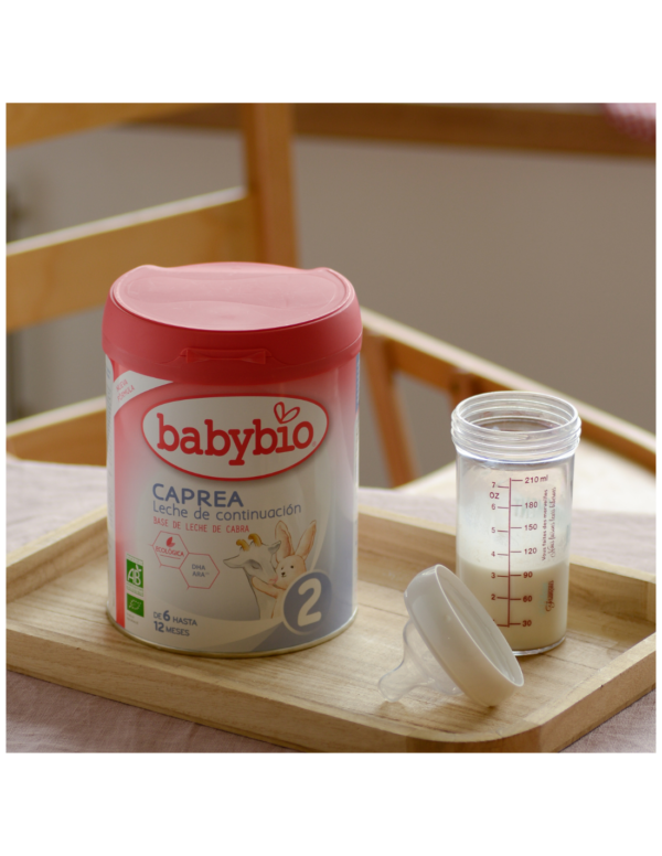La fórmula CAPREA 2 de Babybio es suave en el estómago gracias a su composición proteica (similar al perfil de la leche materna). Proporciona vitaminas, minerales y nutrientes esenciales para complementar la dieta variada y equilibrada del bebé. Además, contiene DHA para ayudar a los bebés a desarrollar una visión normal.