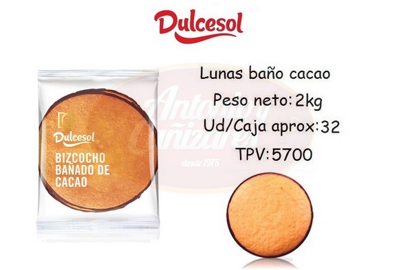 LUNAS LLENAS BAÑO CACAO 2KG ENVUELTO DULCESOL – Caja de 32 Unidades