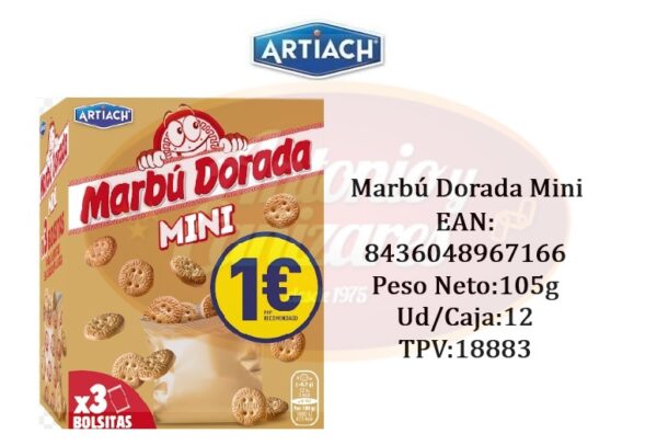 Marbu dorada mini – Peso Neto 105g Artiach – Caja de 12 Unidades