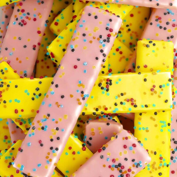 Dulces nubes con una especial cobertura sabor fresa y vainilla con bolitas crujientes de caramelo. Su textura y sabor harán que disfrutes de esta chuche una y otra vez.