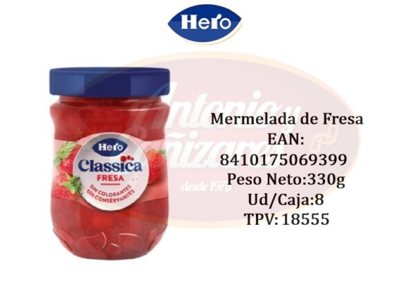 Mermelada Classica, de toda la vida, sabor fresa. Sin colorantes ni conservantes. Sin gluten y vegano.