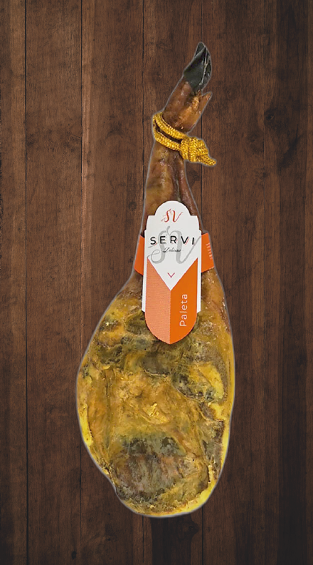 Paletas curadas seleccionadas especialmente por su tamaño y aspecto siguiendo la tradición familiar. Se elaboran con las patas delanteras del Cerdo, saladas con el toque justo para ofrecer el primer ataque dulce tradicional en los productos de Guijuelo. Su lenta maduración y curado más breve que la del jamón (de mayor tamaño) ofrecen un color que va del rosa pálido al rojo cereza intenso sin aromas ni sabores indeseados, pero quizás con unos matices más intensos que los del jamón . El peso de este producto es de 4/5 kgr.