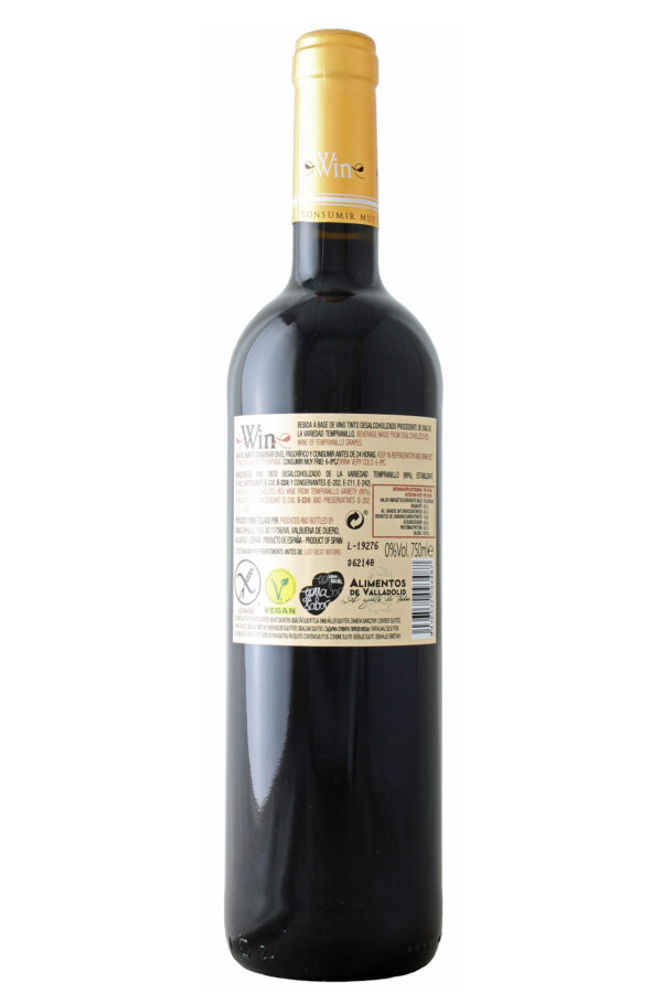 Vino tinto elaborado con la variedad Tempranillo y sin envejecimiento, al que se le ha extraído el alcohol respetando el producto.