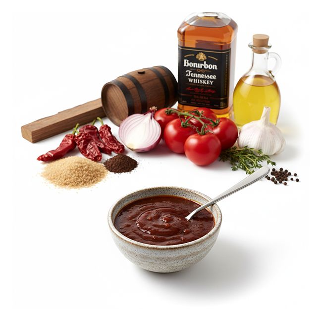 Un viaje a los sabores del sur de Estados Unidos, con un delicado equilibrio entre dulzor, notas ahumadas y la calidez inconfundible del bourbon. Su textura aterciopelada y su aroma envolvente despiertan la memoria gustativa, convirtiéndola en la acompañante perfecta para carnes a la parrilla o preparaciones que buscan un toque auténtico y elegante. Una salsa con alma, tradición y sofisticación.