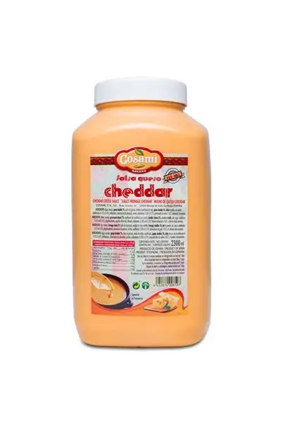 La Salsa Cheddar Garrafa 2 kg de Cosami es un producto elaborado con ingredientes como agua, tomate, aceite de girasol, queso fundido, almidón de maíz, y otros aditivos. Es ideal para acompañar platos como patatas fritas, nachos, o como aderezo para pasta y pescado. Además, se caracteriza por su sabor suave que combina bien con una variedad de recetas.