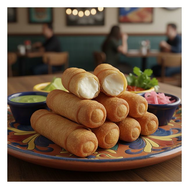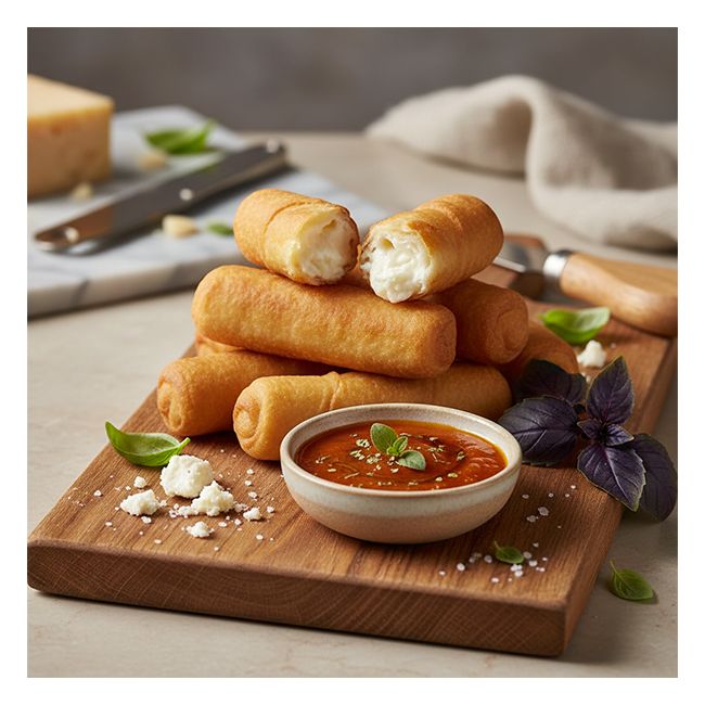 Delicada masa de trigo abrazando queso de cabra cremoso, un bocado sofisticado que deleita al paladar.