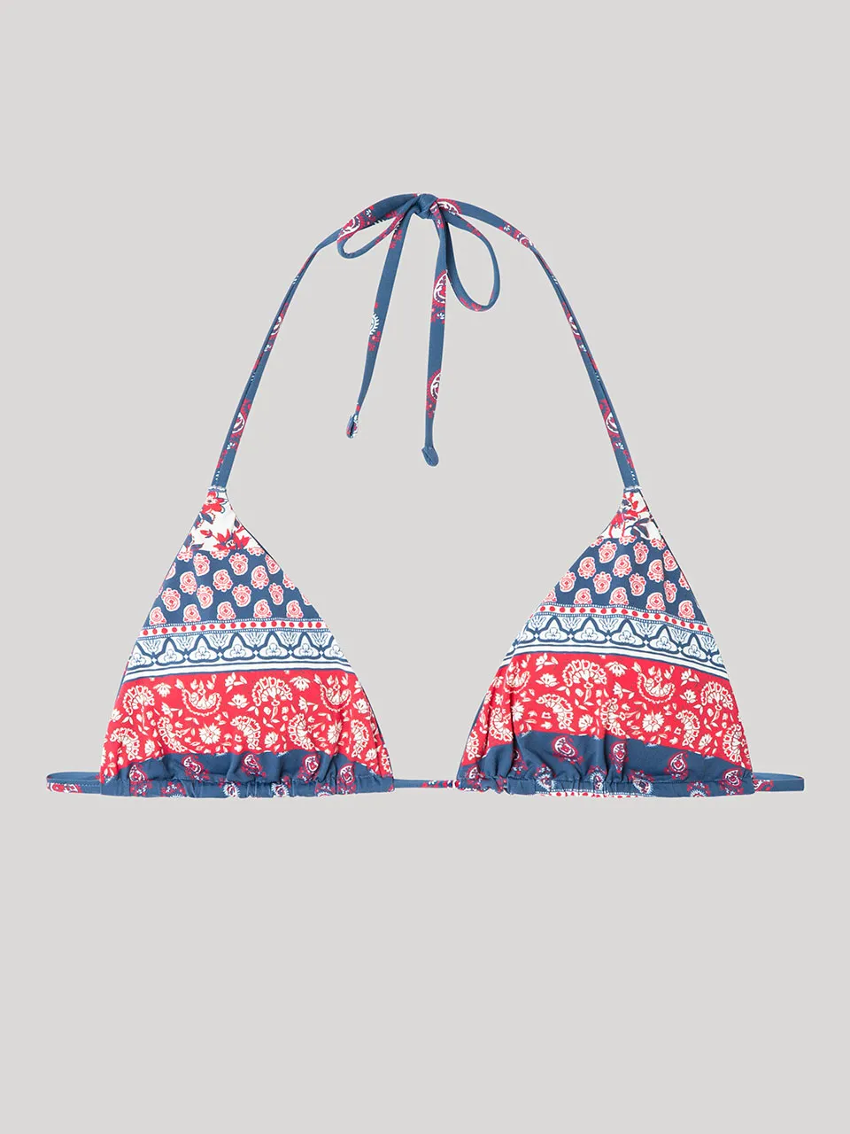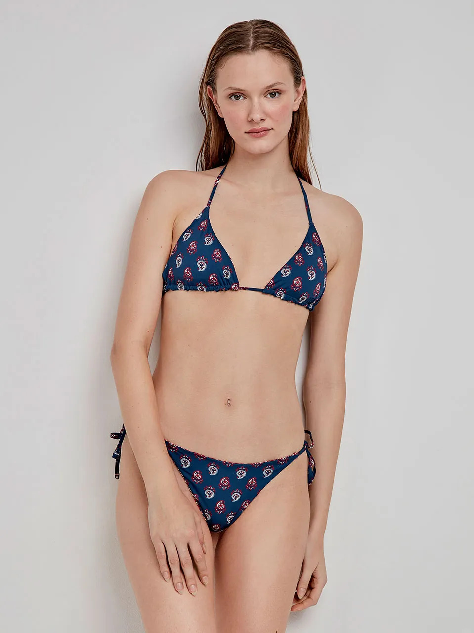 Top bikini triangular y reversible sin aro y con foam extraíble en tejido estampado étnico Combínalo con su braguita bikini a juego.