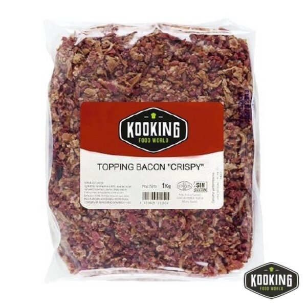 Bacon ahumado sin corteza, cocinado en horno al 80% y cortado en sellos. Extra crujiente para usarlo como topping en ensaladas, patatas bacon & cheese fries, hot dogs, pizzas.
