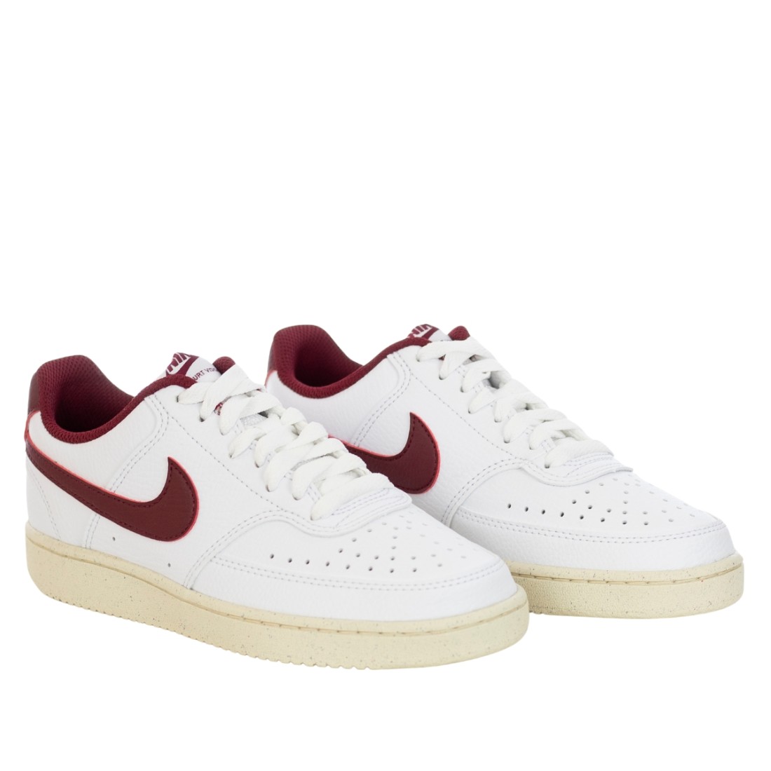 NIKE – Zapatillas de piel sintética blanca con logotipo ‘ ‘ burdeos en contraste en el lateral, la parte trasera y la lengüeta. Suela de goma beige.