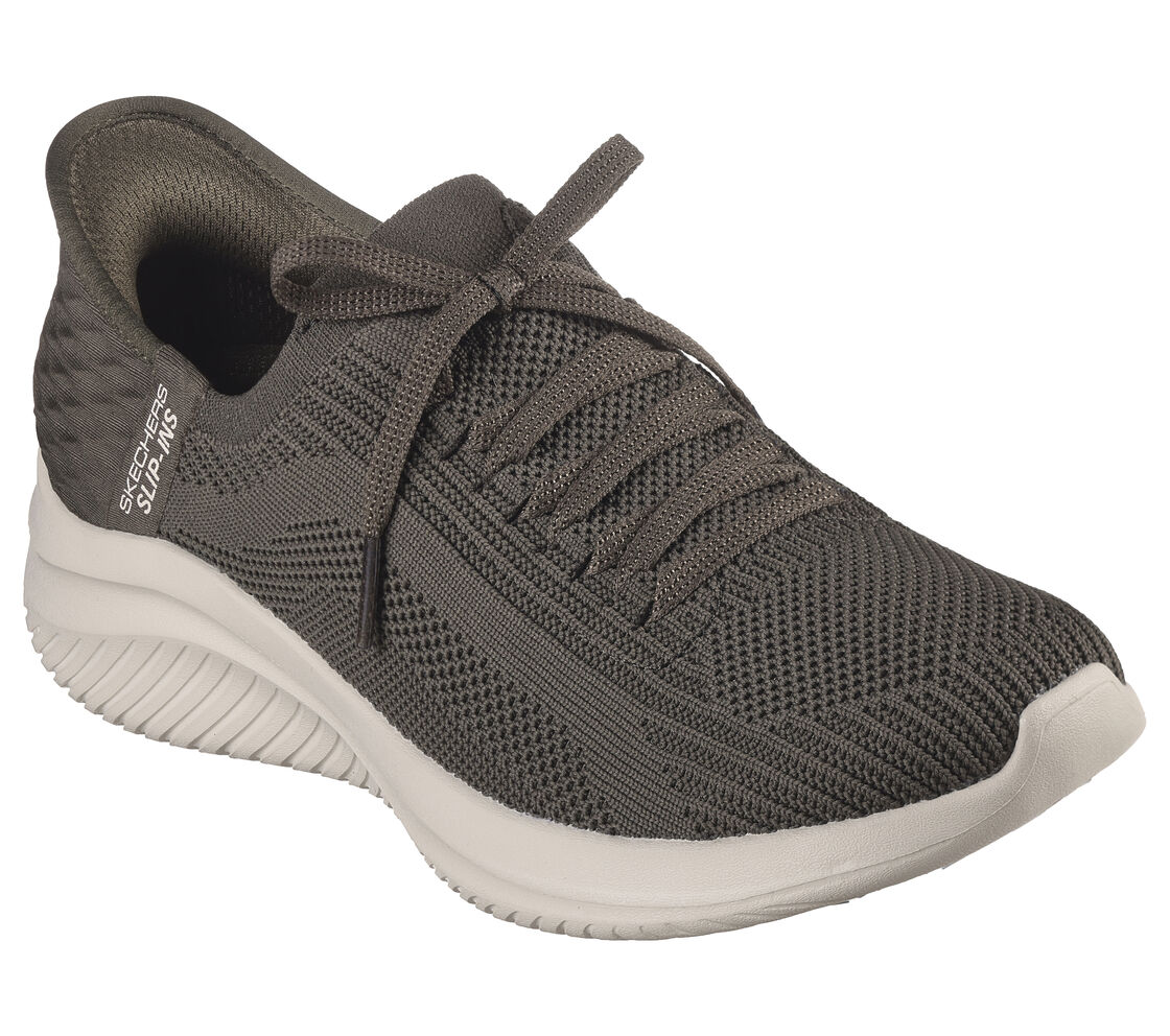 TOUCHLESS FIT® Disfruta de la comodidad sin esfuerzo de Skechers Hands Free Slip-ins®: Ultra Flex 3.0 – Brilliant Path. Diseñada con nuestra exclusiva Heel Pillow™. Este estilo cuenta con una parte superior de knit técnico Stretch Fit® con cordones decorativos y plantilla con amortiguación Skechers Air-Cooled Memory Foam®.